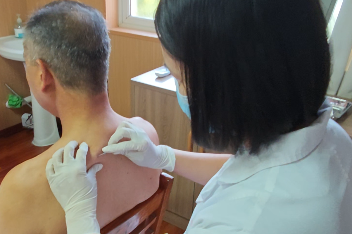 近日,60岁的刘先生因左肩关节疼痛近两个月,来到我院中医科浮针工作室寻求治疗。
