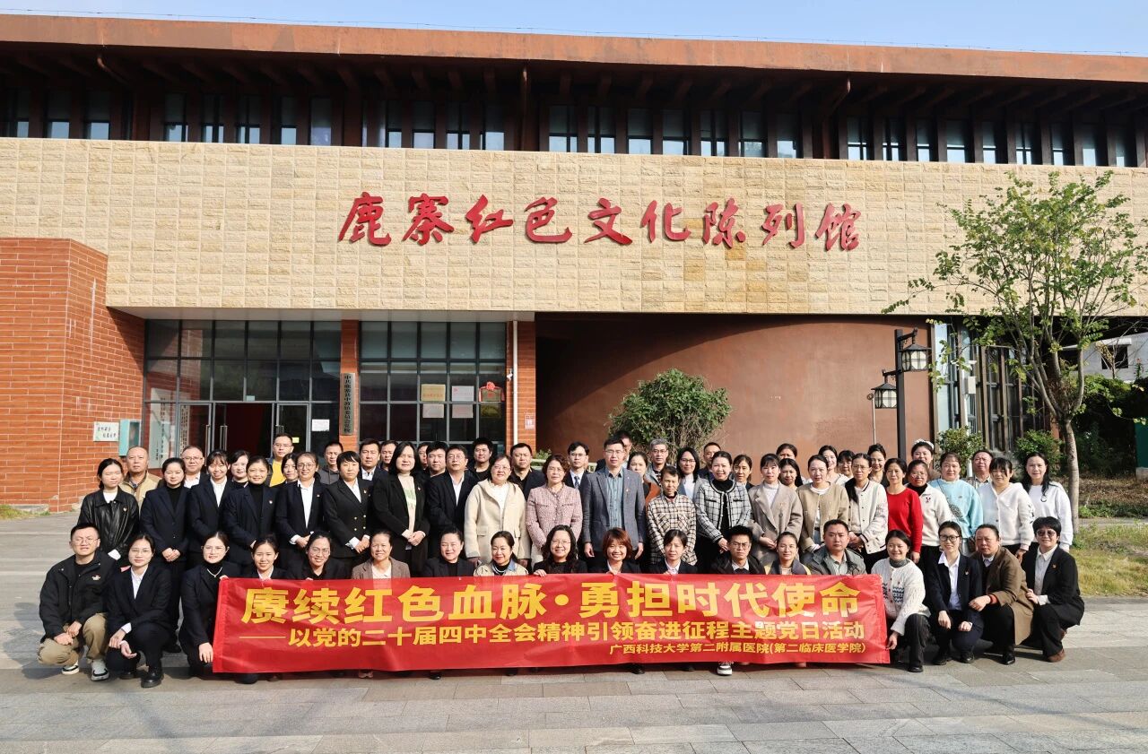 为深入学习贯彻党的二十届四中全会精神,巩固拓展主题教育成果,推动理论学习与红色实践深度融合,激励广大党员干部将“十五五”时期战略部署转化为行动自觉,12月20日,广西科技大学第二附属医院(第二临床医学院)行政第一党支部、行政第二党支部、行政第三党支部、行政第四党支部、门诊第一党支部、外科第二党支部联合组织开展了“赓续红色血脉·勇担时代使命——以党的二十届四中全会精神引领奋进征程”主题党日活动。各支部党员、新发展党员及入党积极分子共计70余人参加。